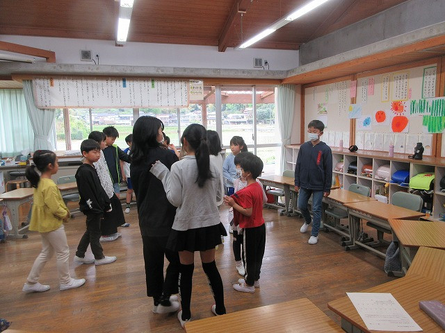 5年生は、とうごうこども園とまつざきこども園にでかけて、交流会をしました。