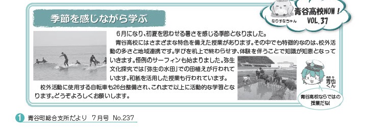 学校長より 青谷高校が求める生徒 総合学科Q&A 系列の紹介 校歌・沿革 学校案内 学校紹介サイト あおこうだより 新聞掲載記事 青谷町総合支所だより掲載記事