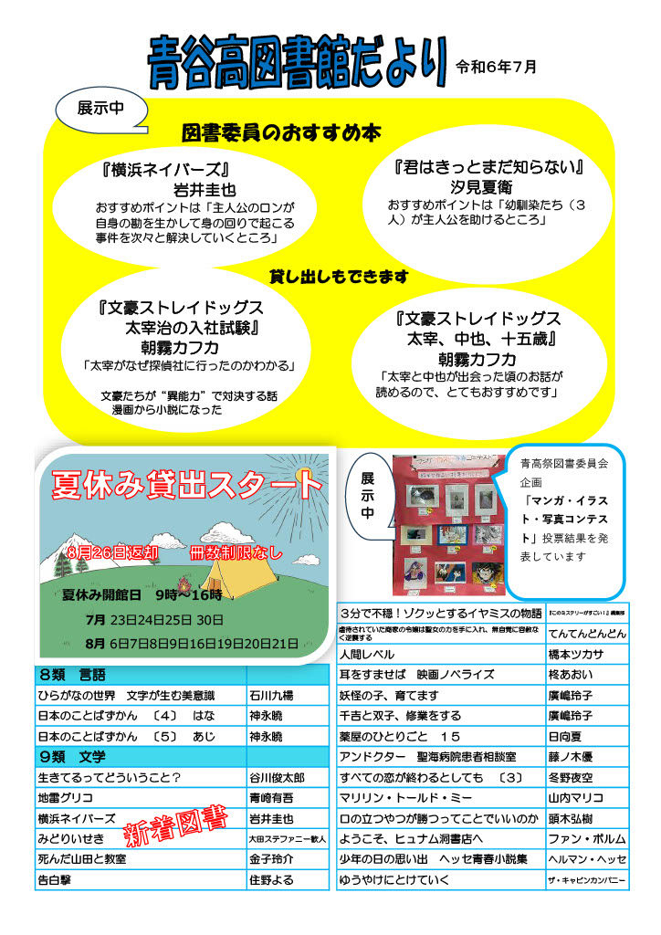 スポーツ大会「ボッチャ」で勝利を! 2022年3月14日 14時00分 3月23日のスポーツ大会では初めて「ボッチャ」が登場します。 続きを読む 「ボッチャ」は「UD(ユニバーサルデザイン)スポーツ」として広まっていて、パラリンピックの正式競技にも採用されています。図書館では、ボッチャに関する本とボールを展示しています。スポーツ大会までにボールに触って投げて、戦術も研究して、勝利を手に入れよう! 閉じる