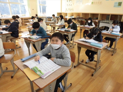 いつもの教室から離れて、司書の先生も参加する授業。子供たちの気分転換もできて、学習意欲が高まっているようです。