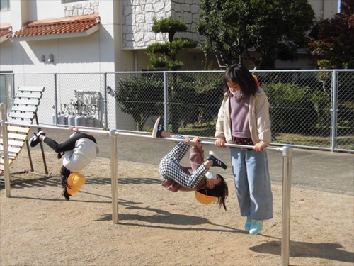 朝日に当たって輝く校舎です。桜の葉もすっかり落ちてしまいました。今日も元気な子供たち。1校時の授業が始まりました。