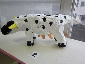 1年美術の授業で伝統工芸張り子の制作をしました。テーマは来年の干支「牛」です。