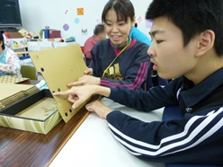 | 11月12日に、かわさき吾亦紅で進路体験を行いました。 電気製品の部品固定に使用するダンボールを、1つずつ切り離したり折り目に合わせて折ったりする作業を午前・午後ともにしました。また、手元のダンボールが無くなった時に「できました。」と担任や職員の方に報告をすることにも取り組みました。作業の合間や休憩時間には、他の利用者の方に声をかけていただき、1日を通して和やかに過ごすことができました。 |