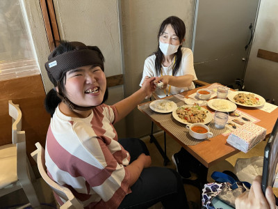 到着後、まずはお風呂で旅の疲れをリフレッシュ。その後は、お待ちかねの夕食の時間です。特別食にも丁寧に対応していただき、安心しておいしくいただくことができました。夕食後は、みんなで集まってババ抜きをしたり、たくさん話をしたりして、楽しい時間を過ごしました。ゆったりとした雰囲気の中、一日の思い出を共有し、次の日に備えてゆっくりと休みました。