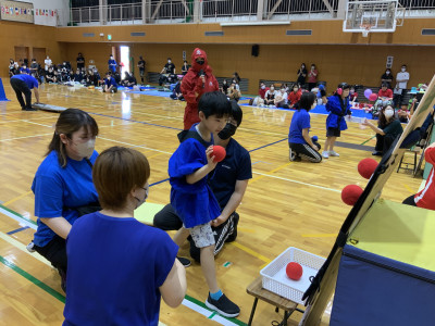 給食の時間は、自立活動の個別の目標があります。給食を食べる前に献立を確認したり、食事の匂いを確認したりしてからいただいています。この日はカレーライスのいい匂いがしていました。デザートは季節のフルーツいちごでした!