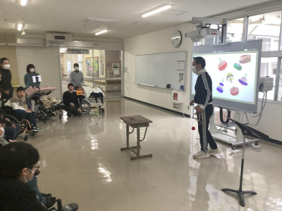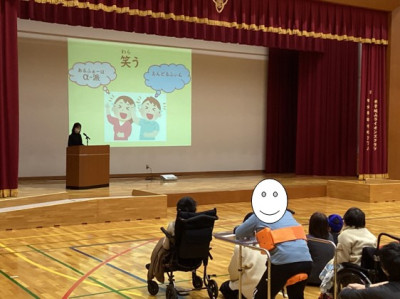 高等部1組では、生活単元学習で学習したことをスライドやクイズにして発表します。ゆっくり、前をみて話すことを目標に練習をがんばっています。発表に使う看板を作ったり、衣装を作ったりと自分たちでアイディアを出し合い、友だちと協力しながら活動しています。発表の最後はノリノリでダンスもします。先生たちに「ダンスを一緒に踊りましょう。」とチラシを作ってお願いに行きました。当日が楽しみです。