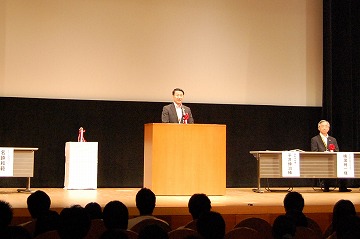 早稲田大学・弦間正彦先生は「どのチームもわかりやすく、工夫がなされていた。現状把握をした上での解決策になっており、またグローバルな視点も盛り込まれており、大差ない結果であった。」と講評されました。また、倉吉東高は「伝統と科学技術の重要性・広汎なアプローチ」を、長崎東高は「地域レベルの取組」を、甲南高は「高校生に何ができるか・中長期的な視点」を評価されました。 表彰式に引き続き、筑波大学の高橋大輔先生に「国際食料需給と日本農業」というテーマで特別講義をしていただきました。先生は「途上国に対して、技術の開発・普及やインフラ整備などの援助を行い、同時に日本が安定的に食料を輸入できるようにすることが、私の考えるまず一番の解決策である。」と強調されました。 最後に、陶山達也実行委員長がお礼の言葉を述べ、閉会行事はすべて終了しました。その後、各校参加者は倉吉旧市内に場所を移し、最後の交流を深めました 。