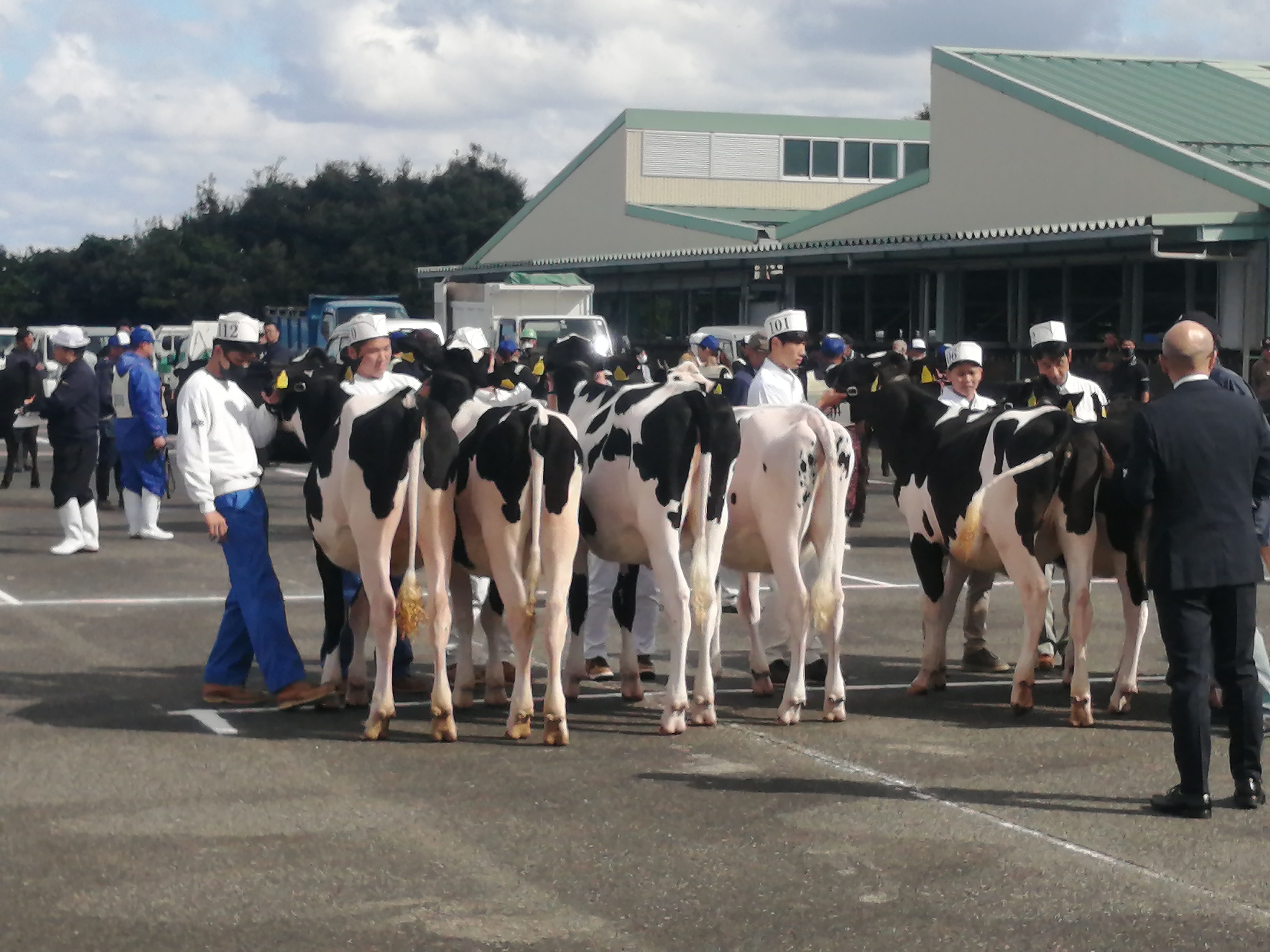 10月28日 鳥取県中央家畜市場で開催された鳥取県畜産共進会 乳牛の部に生物科 酪農部門で参加しました。