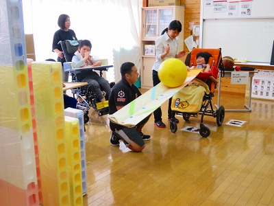 自立活動室の揺れ遊具やトランポリンなどを使って友だちと楽しんだり、考えながら遊んだりする姿が見られました。時間いっぱい体を動かしてみんなで遊びました!