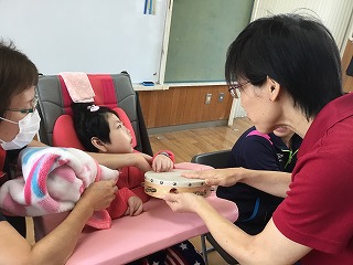 B小1、2年生は生活単元学習を合同で行っています。児童の好きな遊びを通して、友だちと仲よく遊ぶことや、遊ぶ中でのルール、後片付けなどを身に付けることを学習しています。違うクラスや学年の友だちと一緒に遊んだり、話しかけたりする姿も見られるようになってきました。学習中には、友だちに「かして」や「ありがとう」など自分なりの方法で伝える場面も増えてきました。