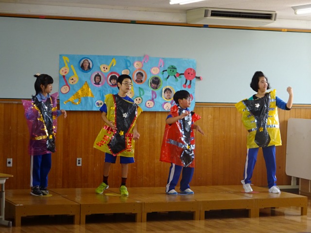 学校で入浴、食事、お楽しみ会、就寝などの活動をしました。