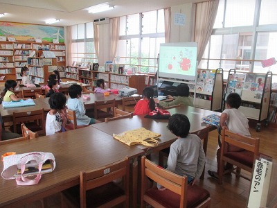 2021年6月18日 17時13分司書教諭の先生に、絵本の読み聞かせをしていただきました。