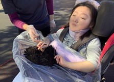 オオデマリは柔らかな大きな花。感触を感じて手を動かしますが、なかなか握れません。カラスノエンドウのつるは、程よいコシがあり、ちょうど握りやすい!と手首を返して握り、引っ張り合いをしました。感触や大きさによって触り方を変えているようでした。