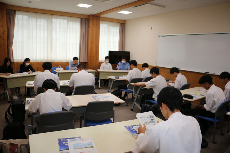 安全講話では、郡家警察署地域交通課長の魚嵜さんが来てくださり、