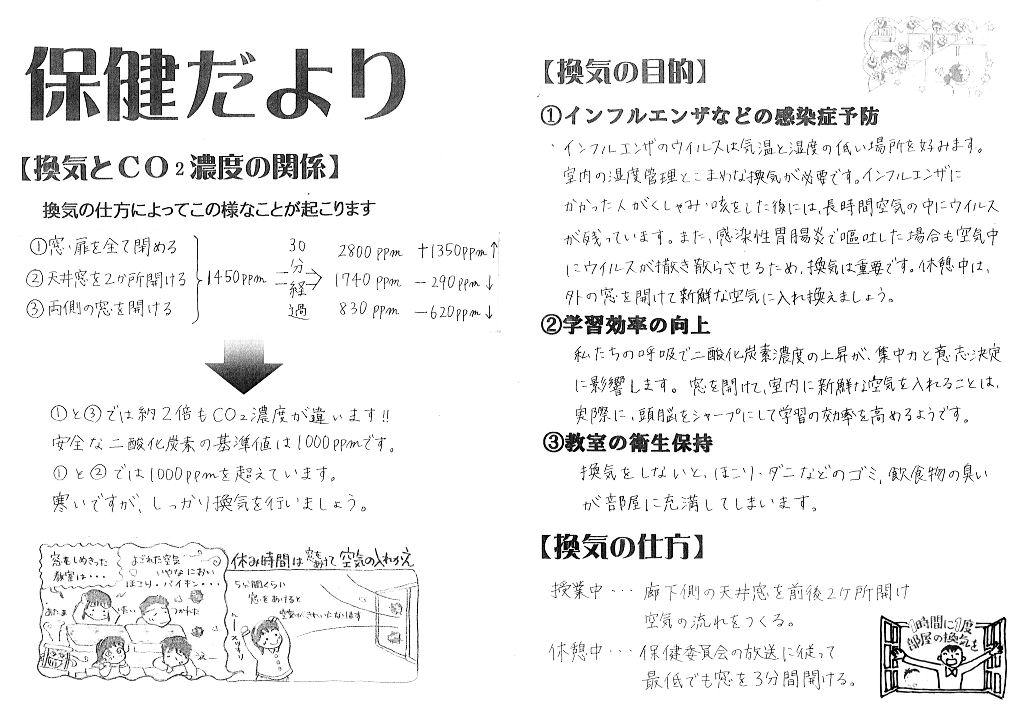 冬の換気と感染症対策のために、保健委員会が保健便りを作成しました。