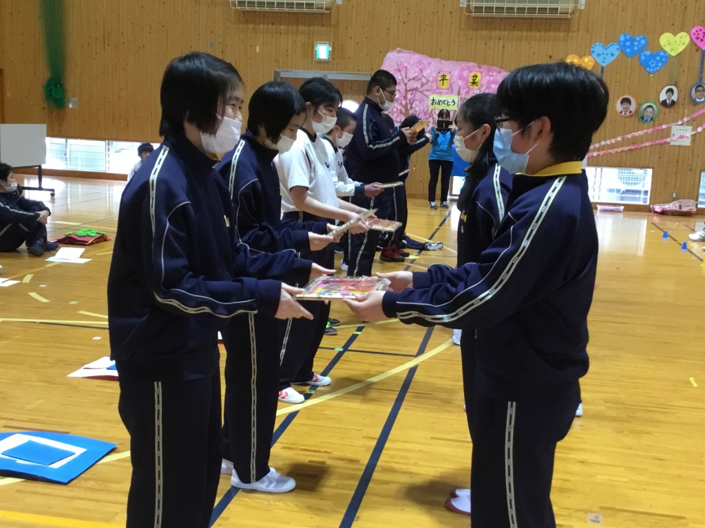2021年12月7日 14時15分 12月3日(金)は、人権教育参観日でした。AB組は、自分や友だちのがんばり、素敵なところを見つけたり、これからがんばりたいことを考えたりしました。1~9組は、来ていただいた方に喜んでもらえることを考え、実行しました。久しぶりに保護者の方に見ていただき、緊張した人もいましたが、がんばっている姿をしっかり見ていただけたと思います。